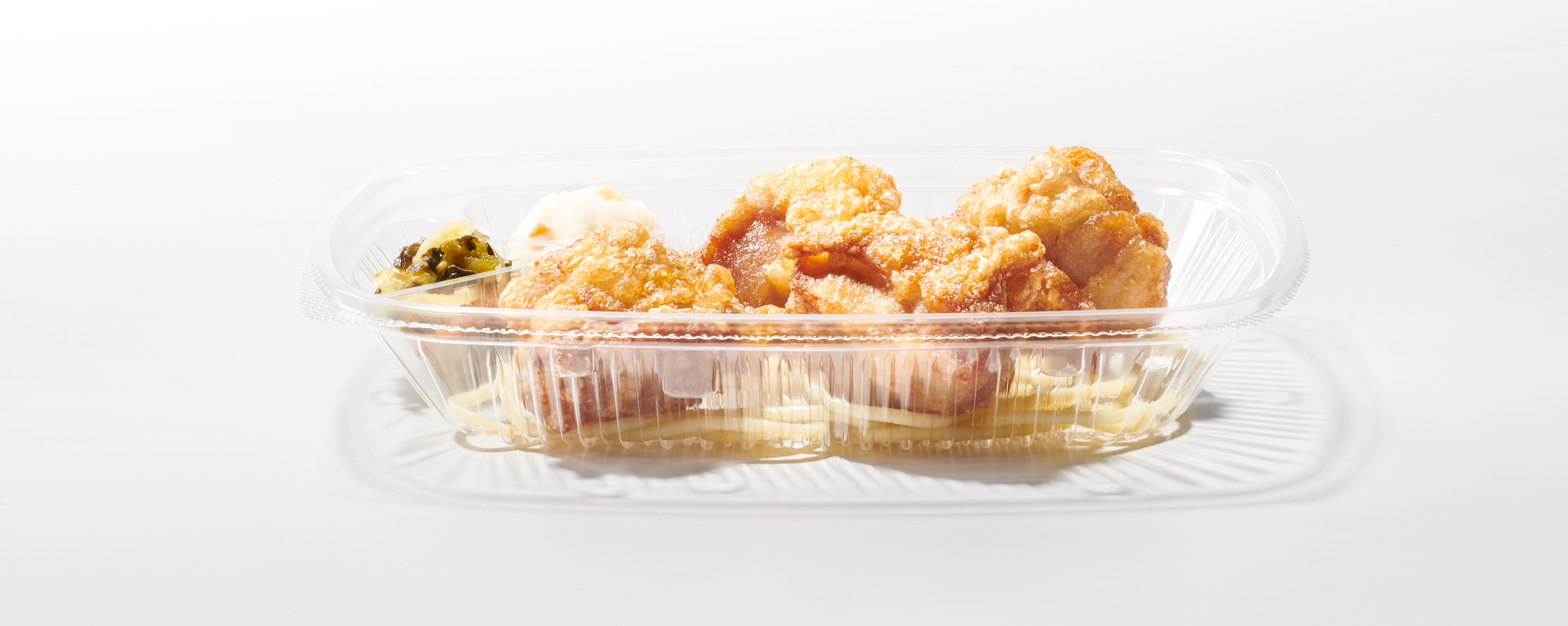 プラスチック使用量を削減するため、お弁当に使用している各種容器の製品改良や、レジ袋、店舗で使用する洗剤等の包装資材の見直しを実施しています。主な取り組みは以下の通りです。